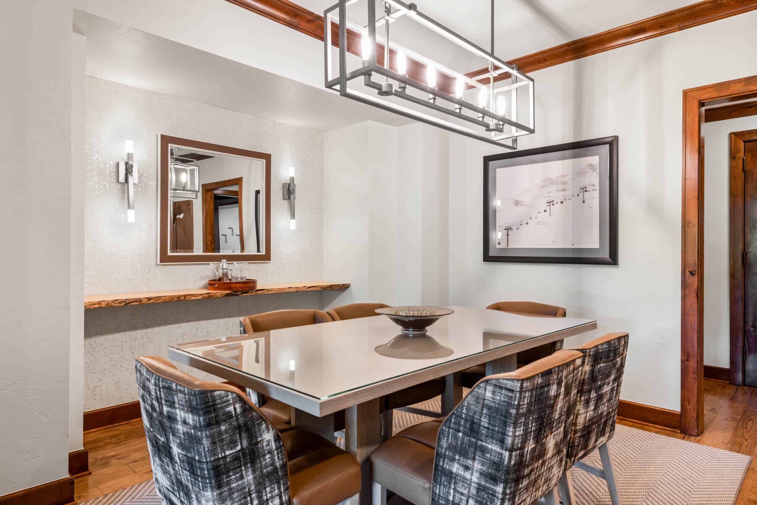Step into a world of refined elegance, where every detail speaks of sophistication. Custom-designed interiors feature designer fabrics, crown moldings, and an exquisite blend of hardwood floors and plush carpets. Panoramic windows flood the space with natural light while offering sweeping views of the majestic slopes or the enchanting Vail Valley.