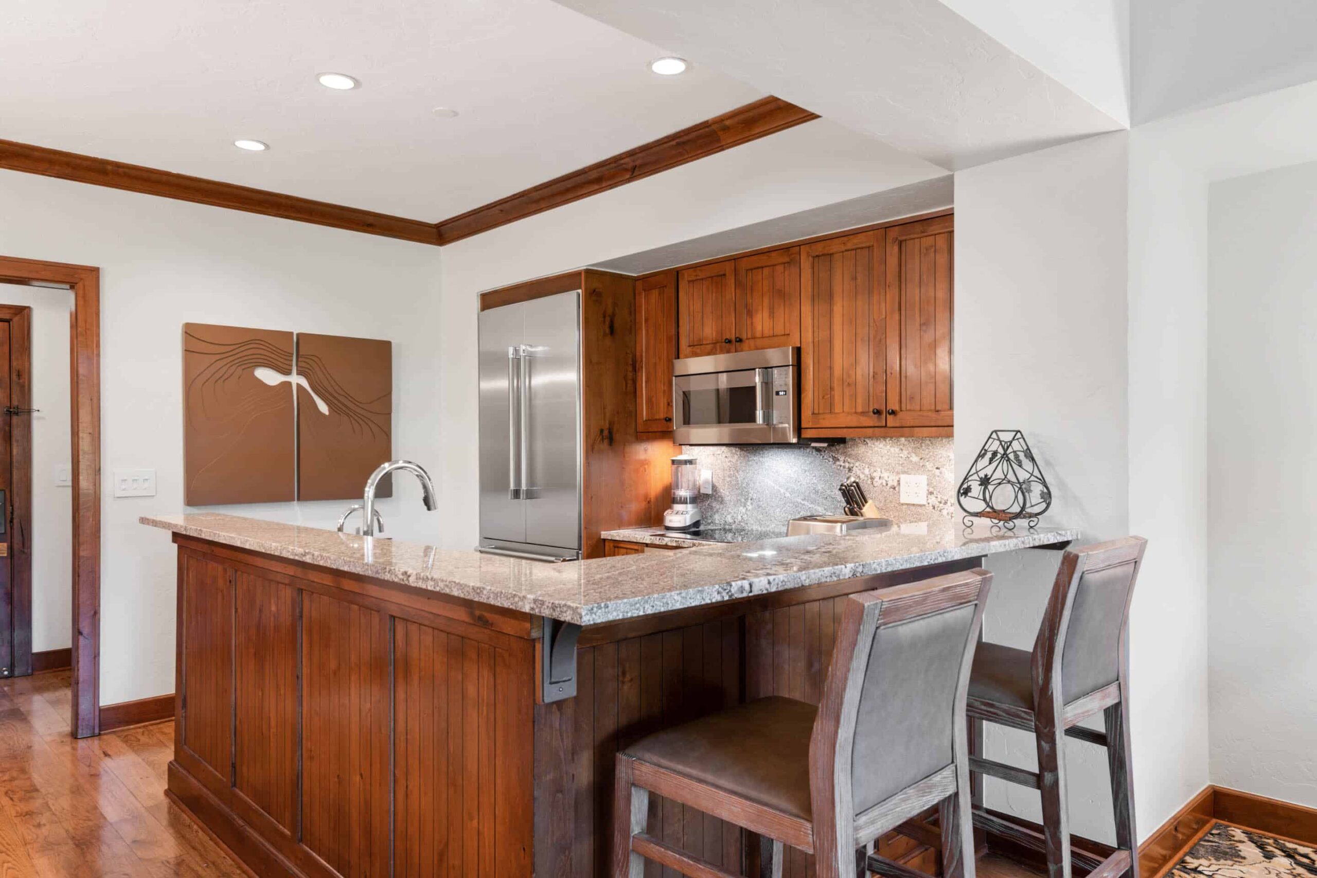 Gourmet kitchens — outfitted with state-of-the-art Thermador appliances — invite both intimate meals and chef-prepared dining experiences, while integrated entertainment systems and high-speed Wi-Fi ensure seamless connectivity. Completing the experience, each residence features a private washer and dryer, allowing for the ultimate in convenience. In every season, your private mountain sanctuary offers an unrivaled level of sophistication and ease.